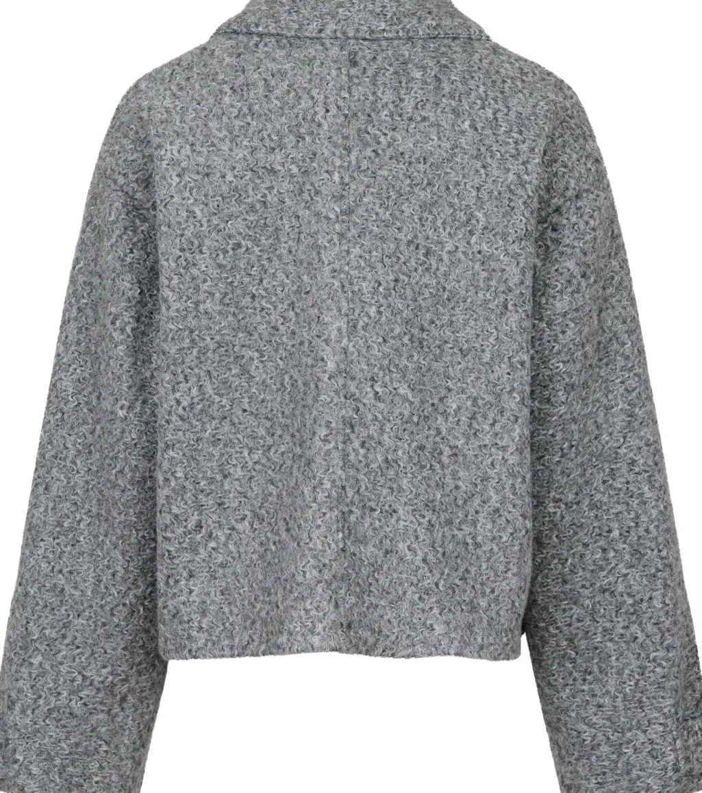 Grå jakke fra Neo Noir i meleret nylon. En kort jakke med Peter Pan-krave og dobbeltbrystet design med knapper. Den boxy silhuet giver god plads til lag-på-lag.