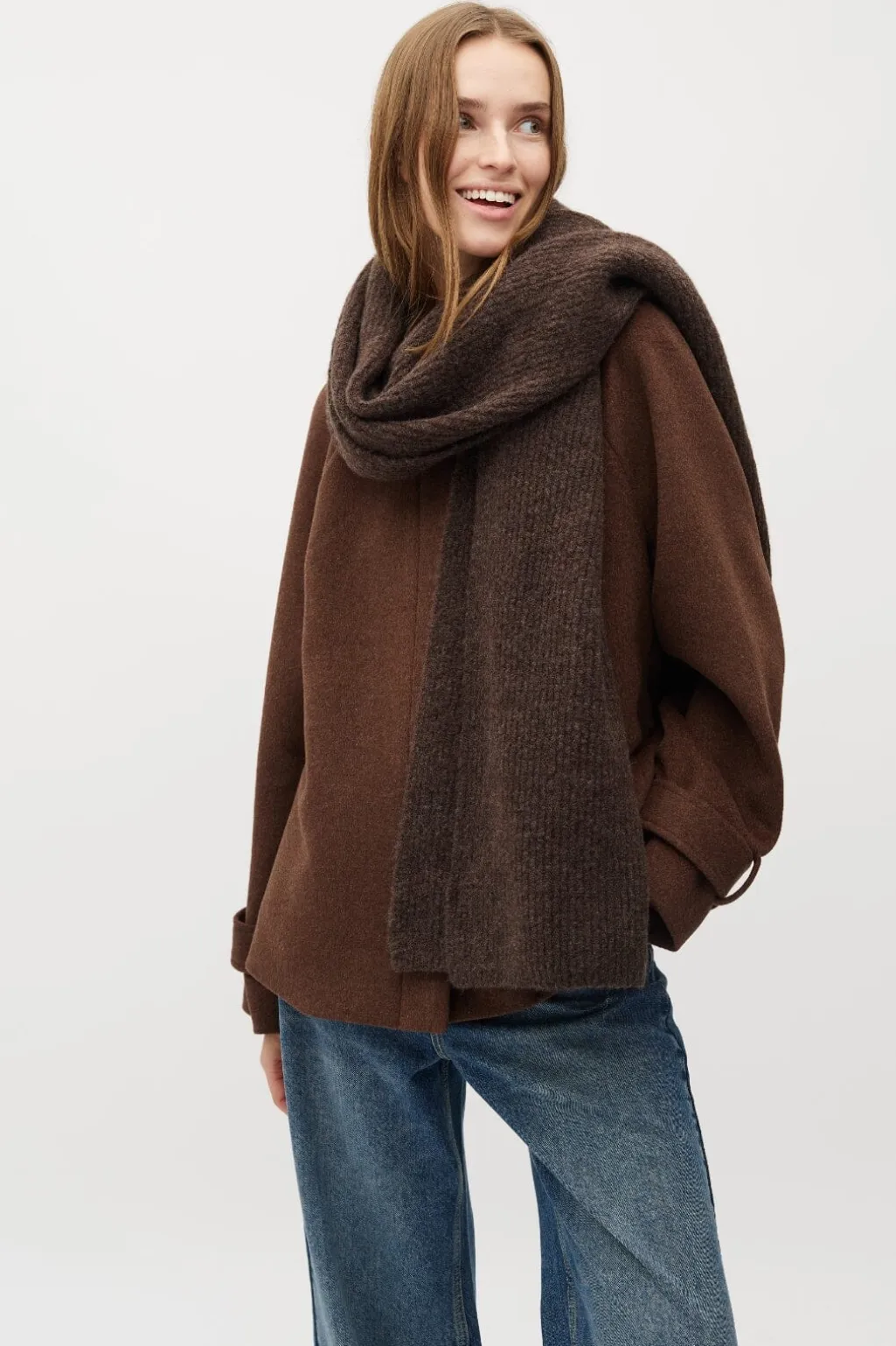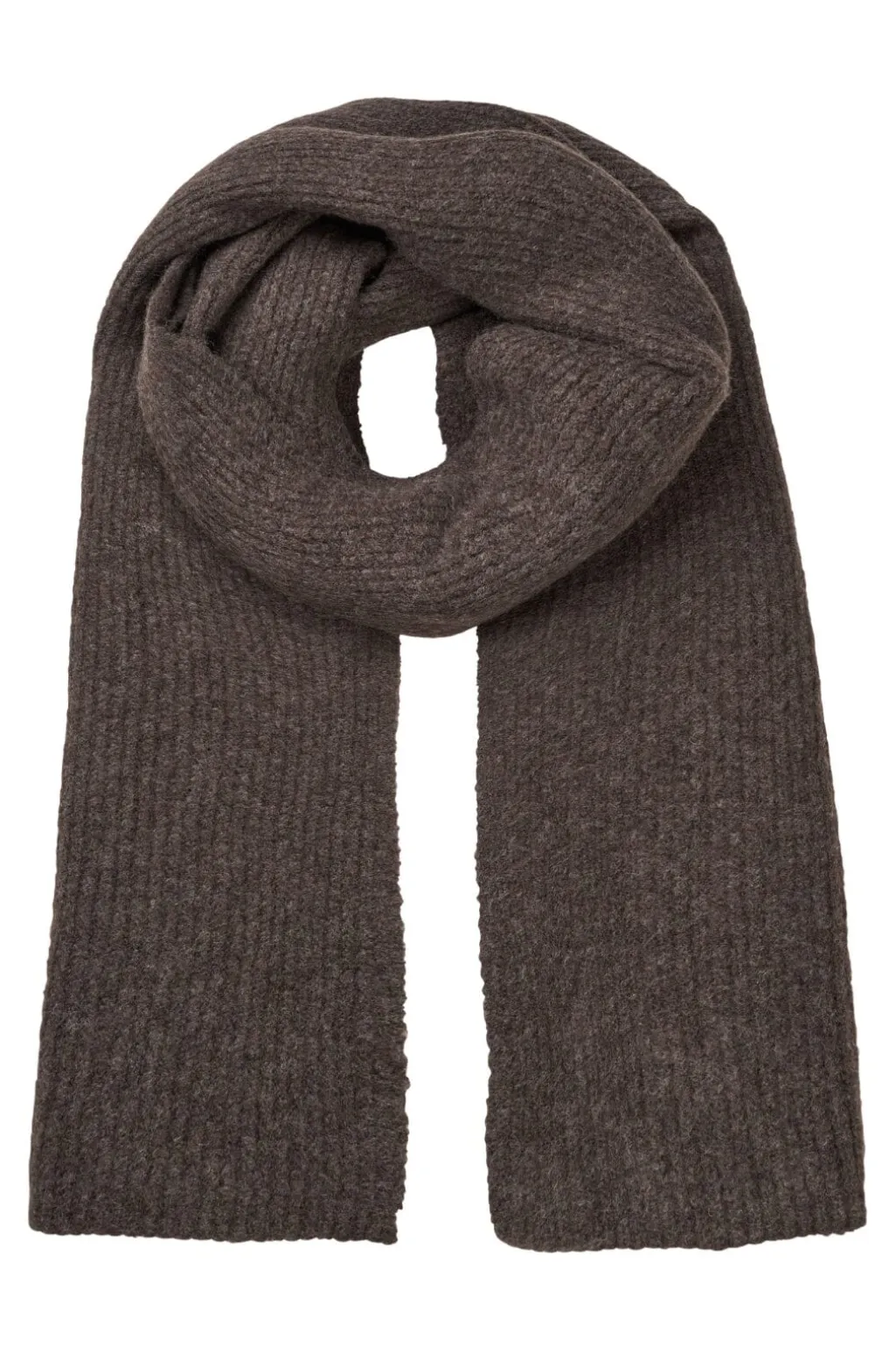 Tørklæde fra MbyM i en varm brun nuance med ribbet tekstur. Tørklædet er langt og kan vikles flere gange om halsen.