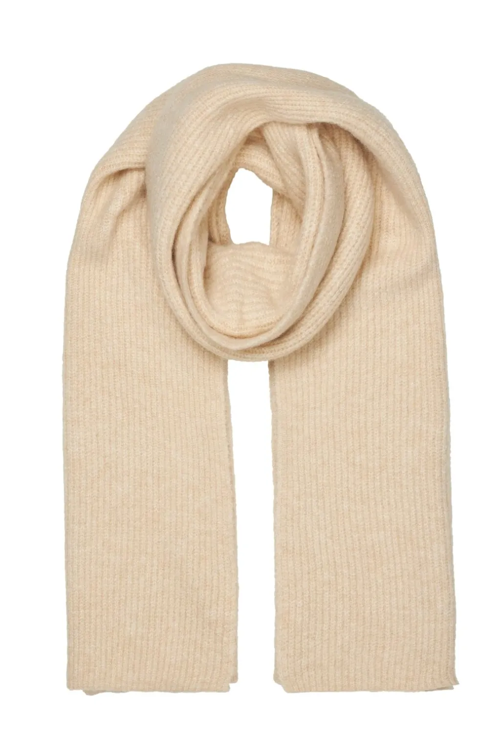 Tørklæde fra MbyM i lys beige. Den ribbede tekstur giver tørklædet struktur, og den melerede farve passer til mange outfits i garderoben.