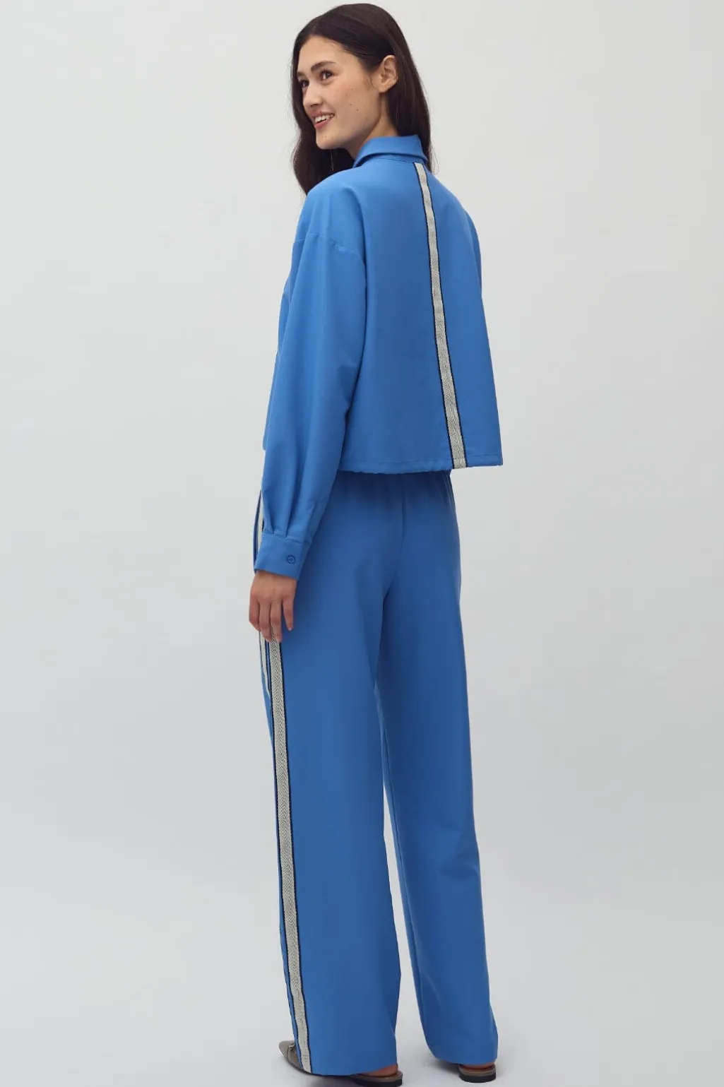 Kort skjorte fra MbyM i en lys blå nuance. Skjorten har lange ærmer, skjortekrave og en kombination af knapper og snøredetaljer, der giver mulighed for forskellige måder at style den på.