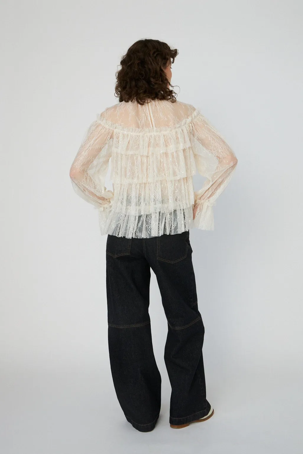 Model: Ls54-2504 – Sheer Frill Lace Blouse