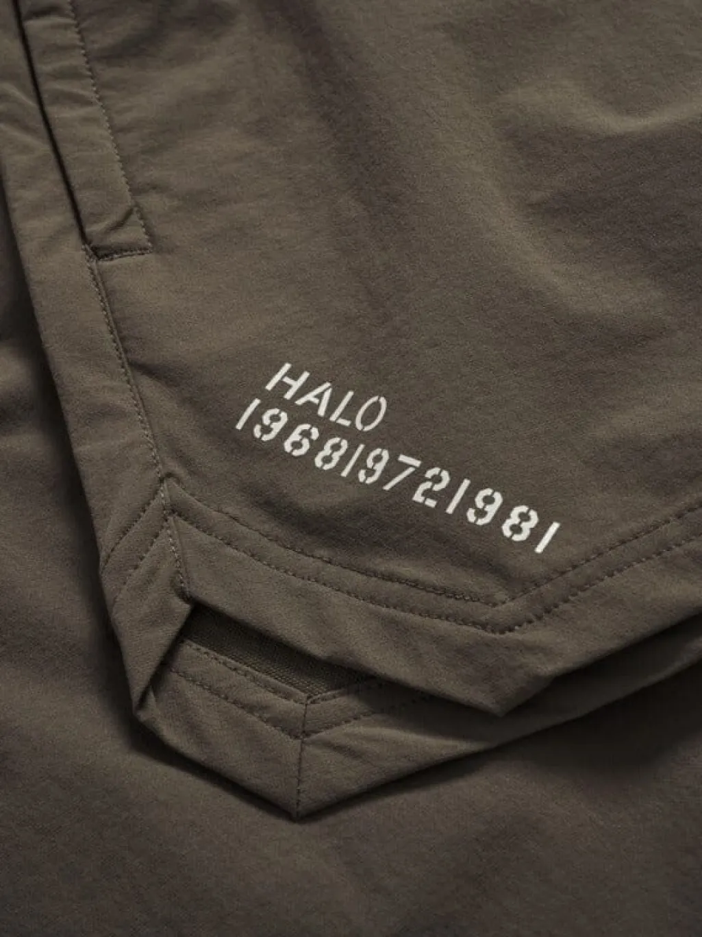 Brune shorts fra Halo, lavet af vævet stretchmateriale med 90 % polyamid og 10 % elastan i en solid brun nuance.