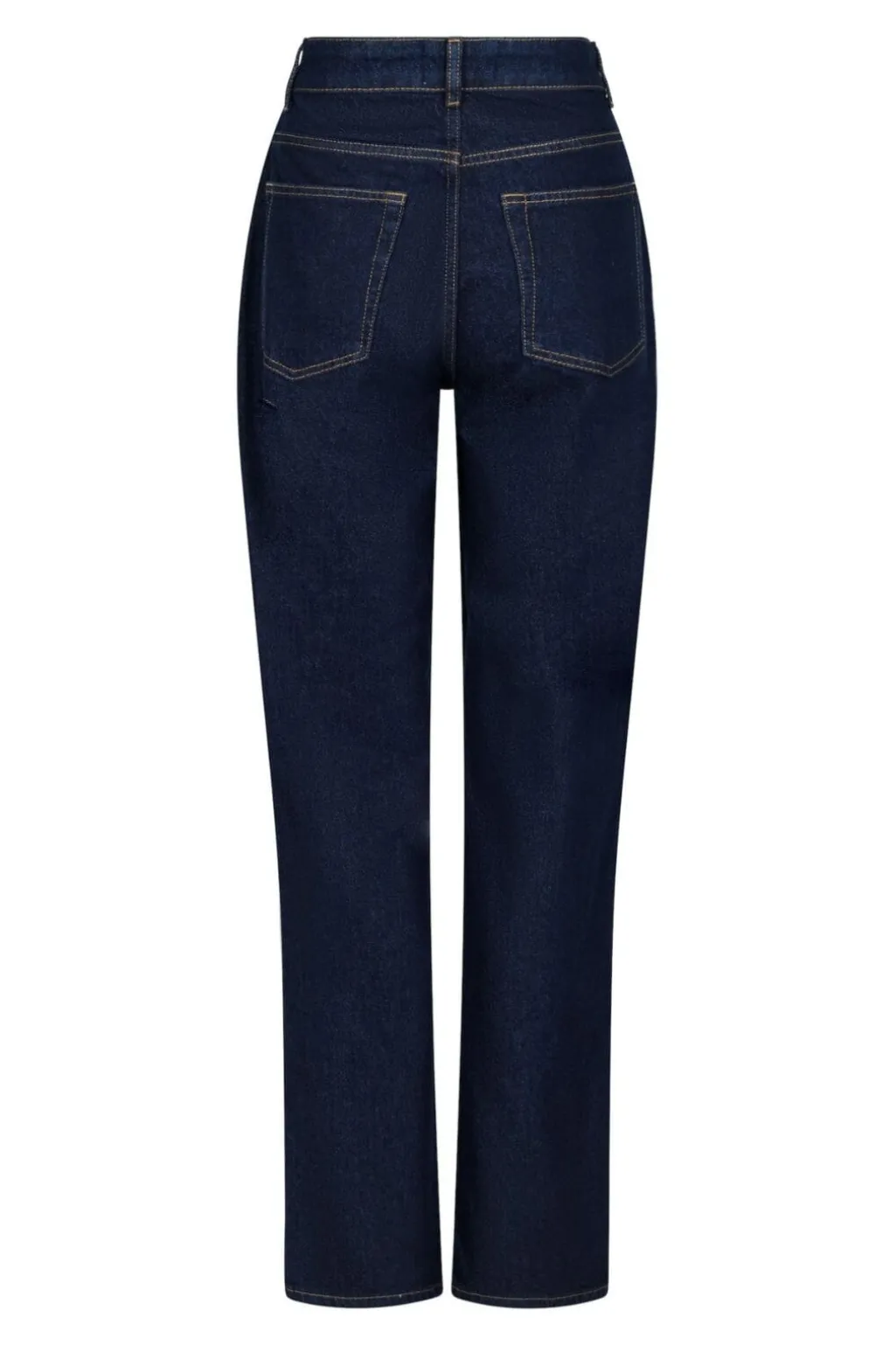 Mørkeblå bukser fra Neo Noir i loose fit. De har lige ben og en regulær talje, der giver en afslappet silhuet. Bukserne lukkes med lynlås og knap foran.