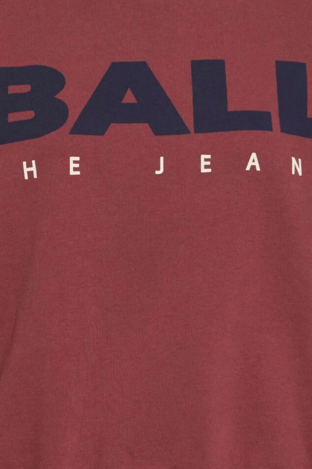 Sweatshirt fra Ball i en dyb rødbrun nuance med stort BALL THE JEANS logo på forsiden. Designet har kontrastfarvede manchetter og halsudskæring.