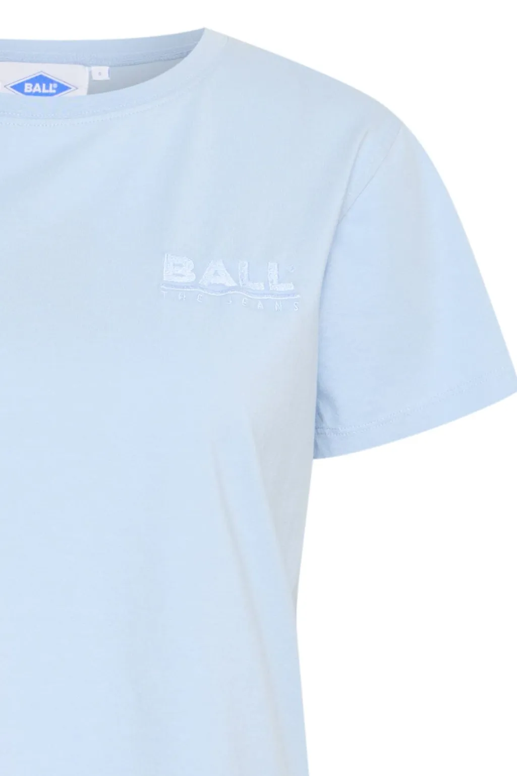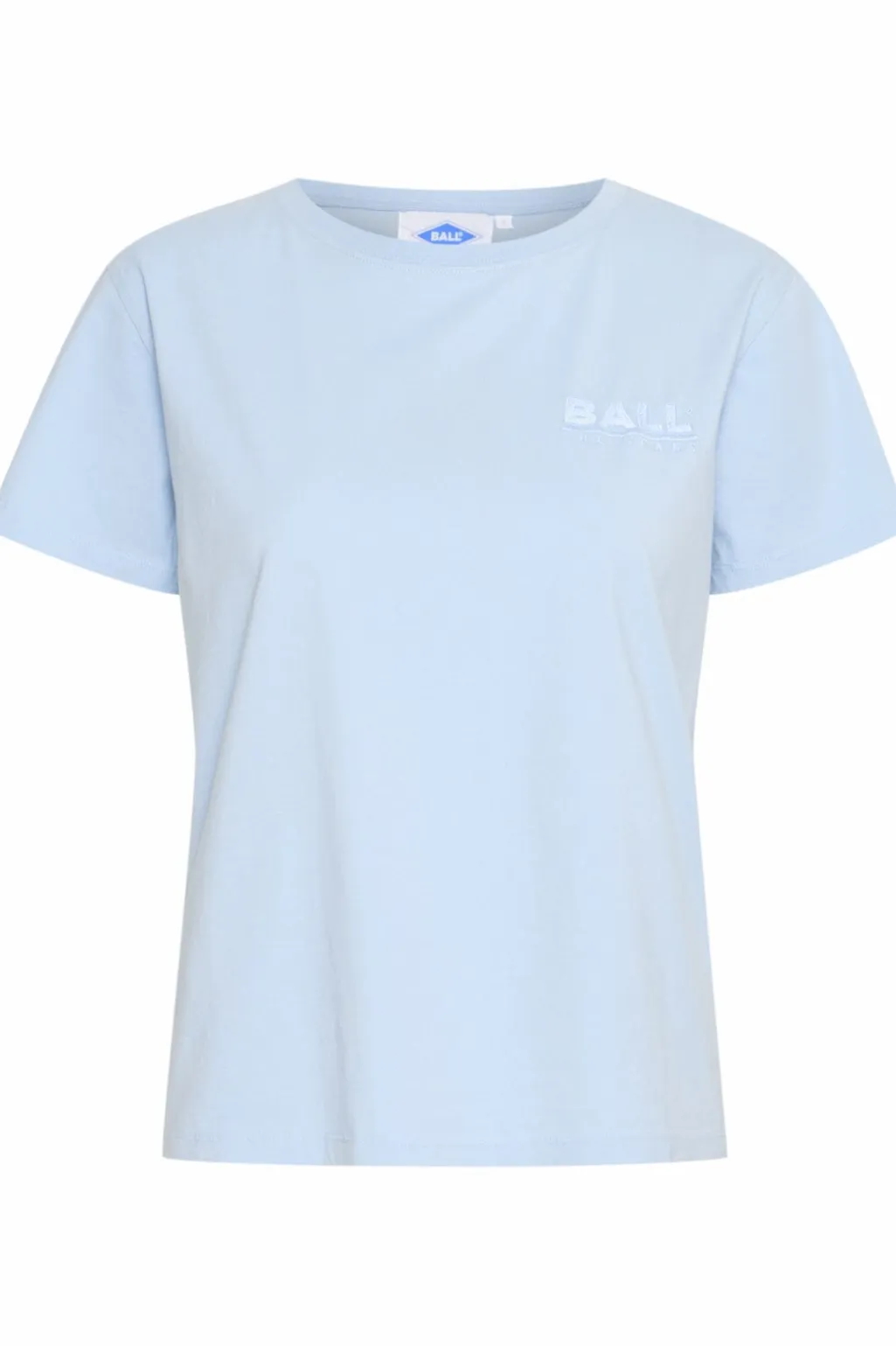T-shirt fra Ball i powder blue med broderet logo på forsiden. Den har en rund hals og korte ærmer med en regular fit-pasform.