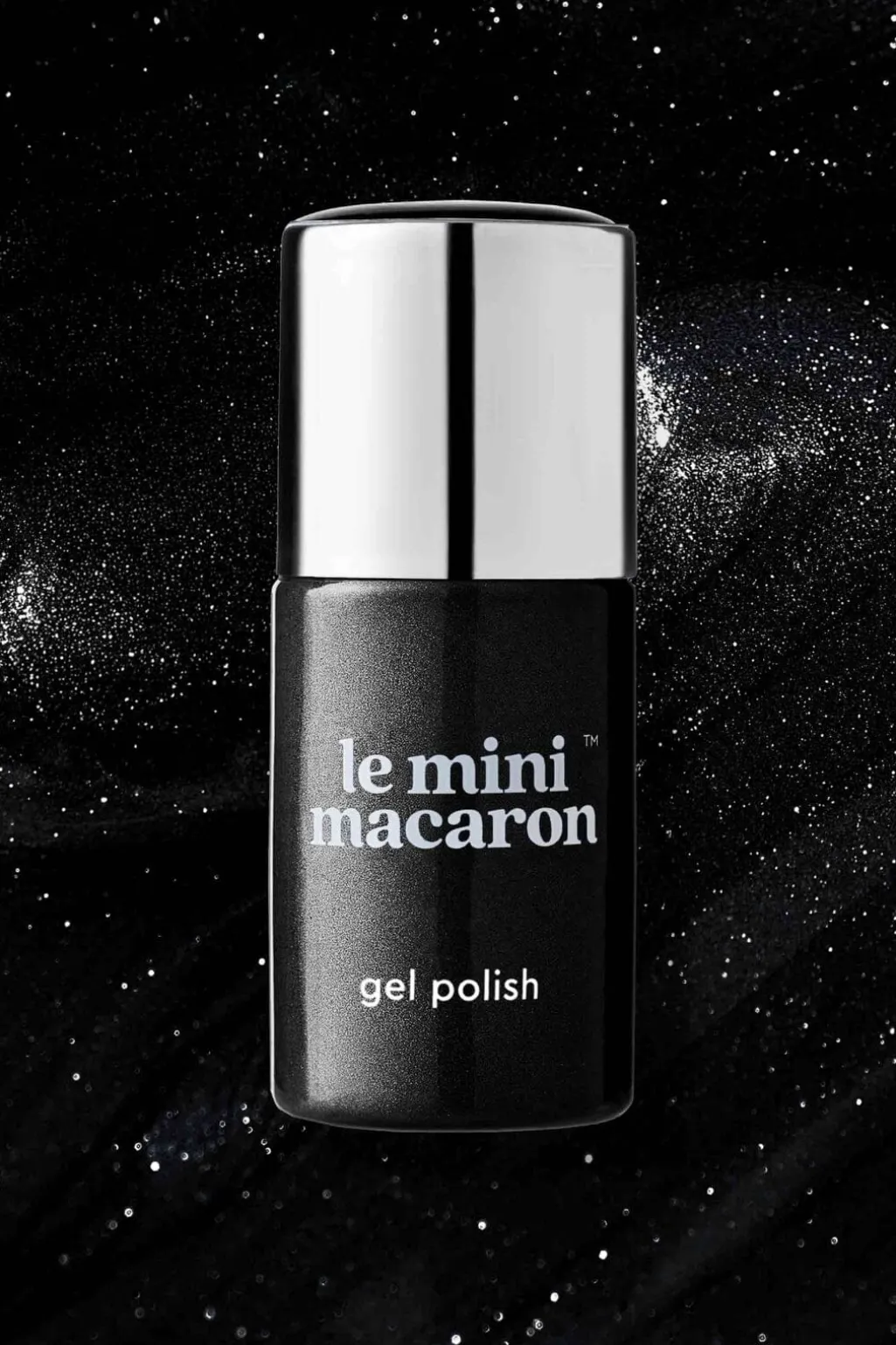 Sort gelneglelak fra Le Mini Macaron med en holdbar finish. Lakken giver en blank og jævn overflade med god dækning.