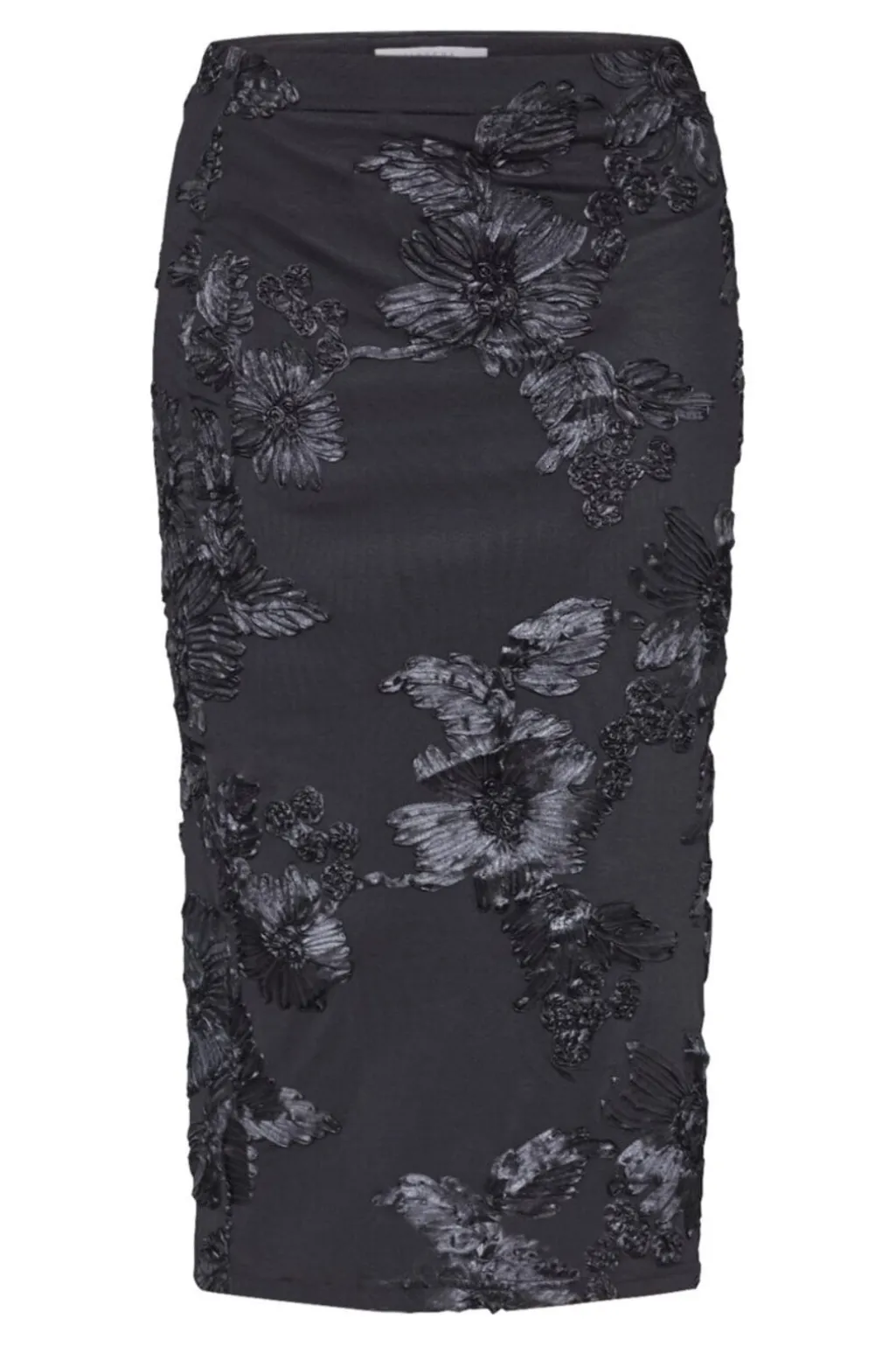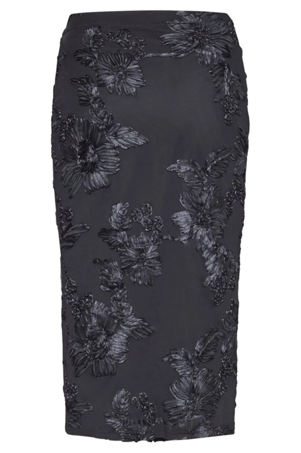 Sort nederdel fra Sisters Point med broderede blomstermotiver. Nederdelen er figursyet og passer til både festlige og formelle begivenheder.