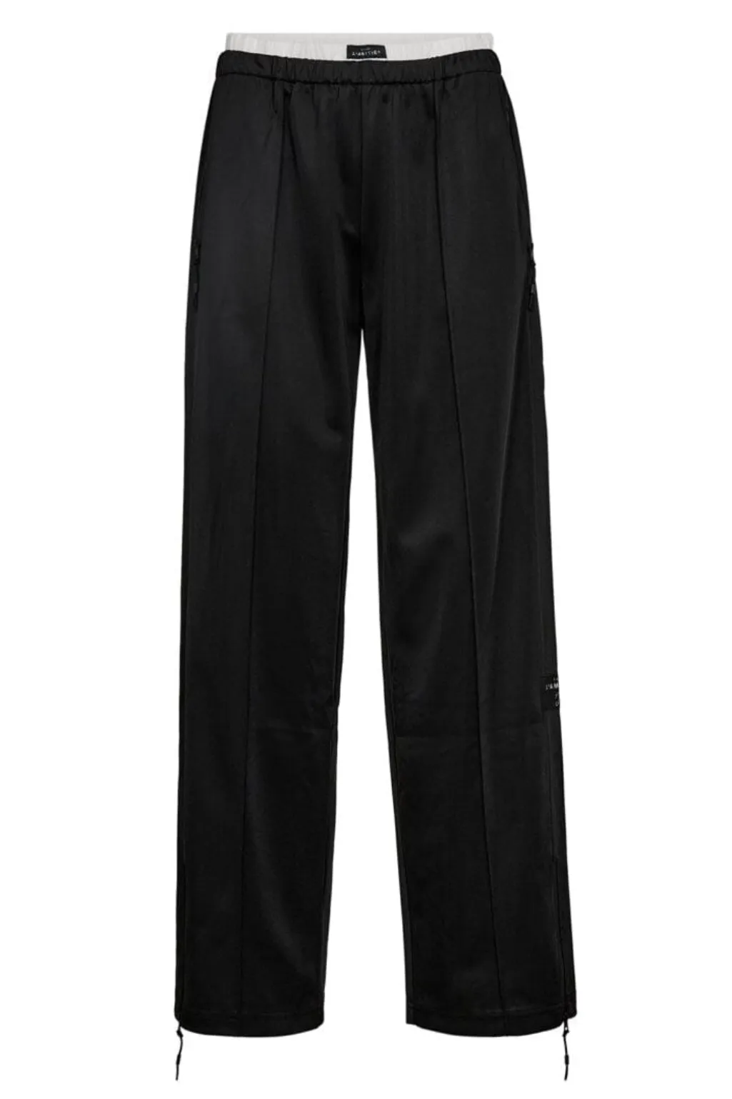 Sorte track pants fra Haute L’Amitié med slim fit-pasform. Bukserne har dekorative syninger langs benene og snøre ved anklerne.