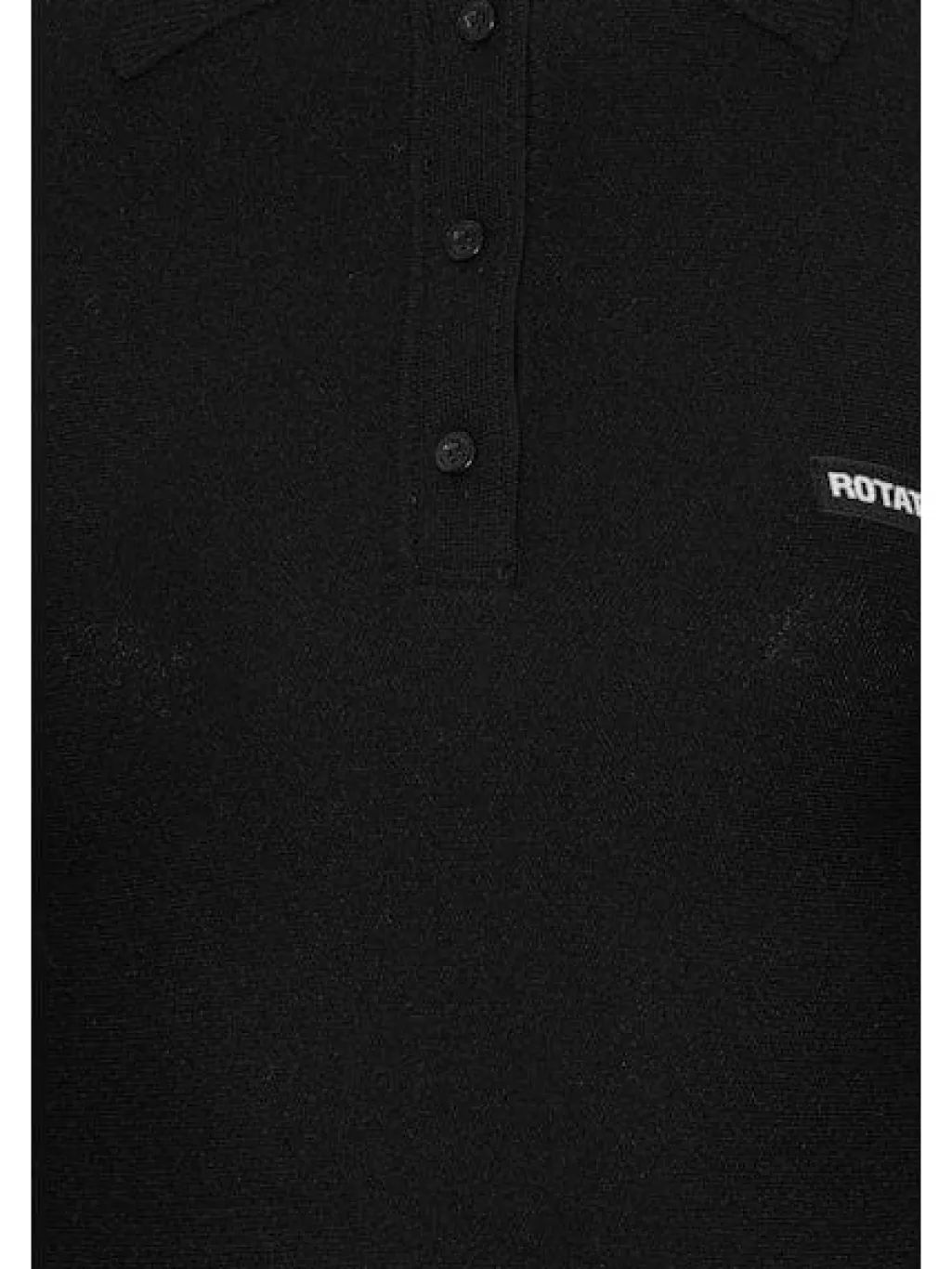 Sort polokjole fra Rotate i slinky knit-stof. Kjolen har lange ærmer, en polokrave med knapper og en svajet nederdel.