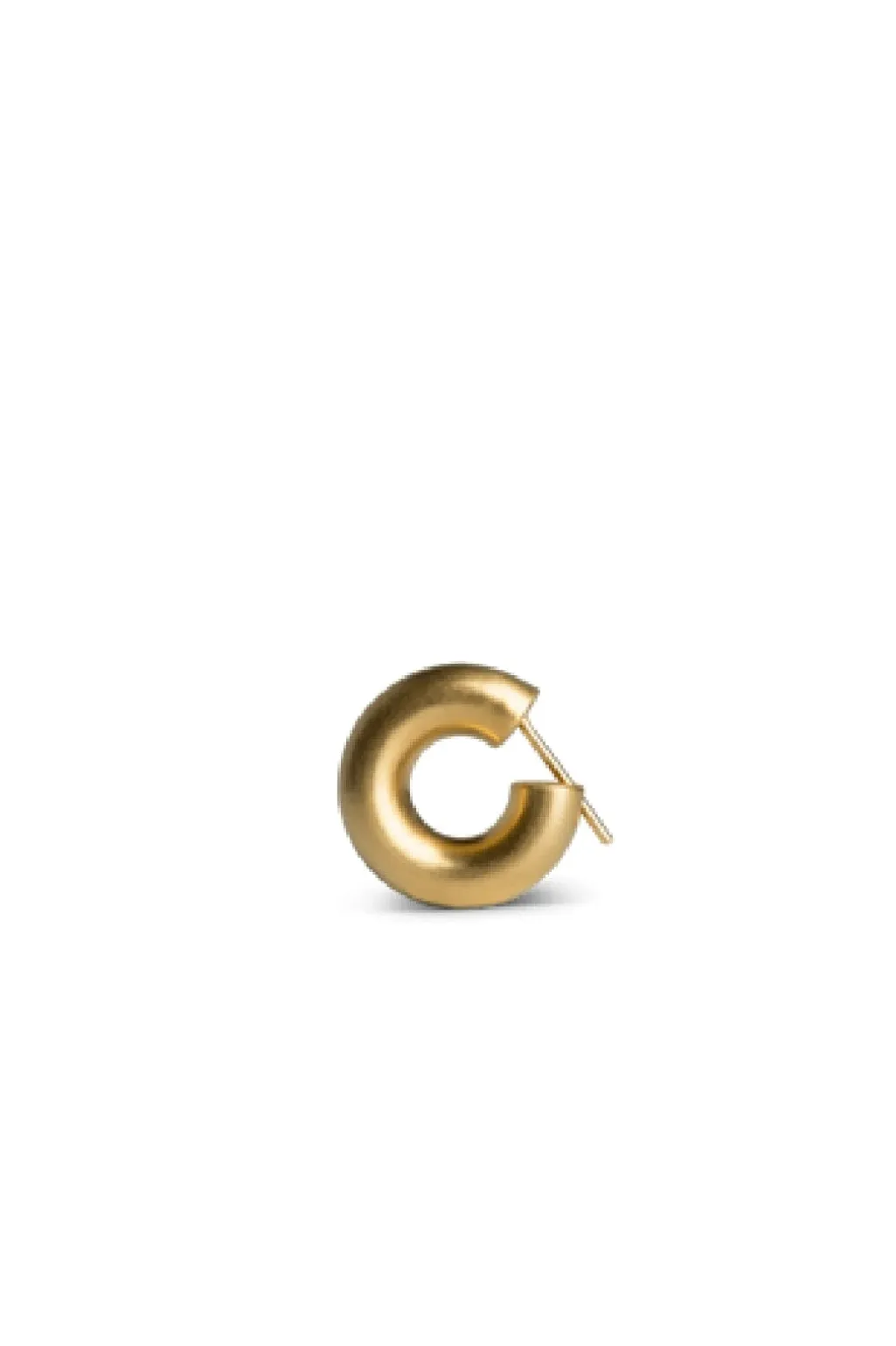 Små chunky hoops fra Jane Kønig med en rund, kraftig form. Øreringene er lavet i forgyldt sølv med en glat overflade og solid konstruktion.