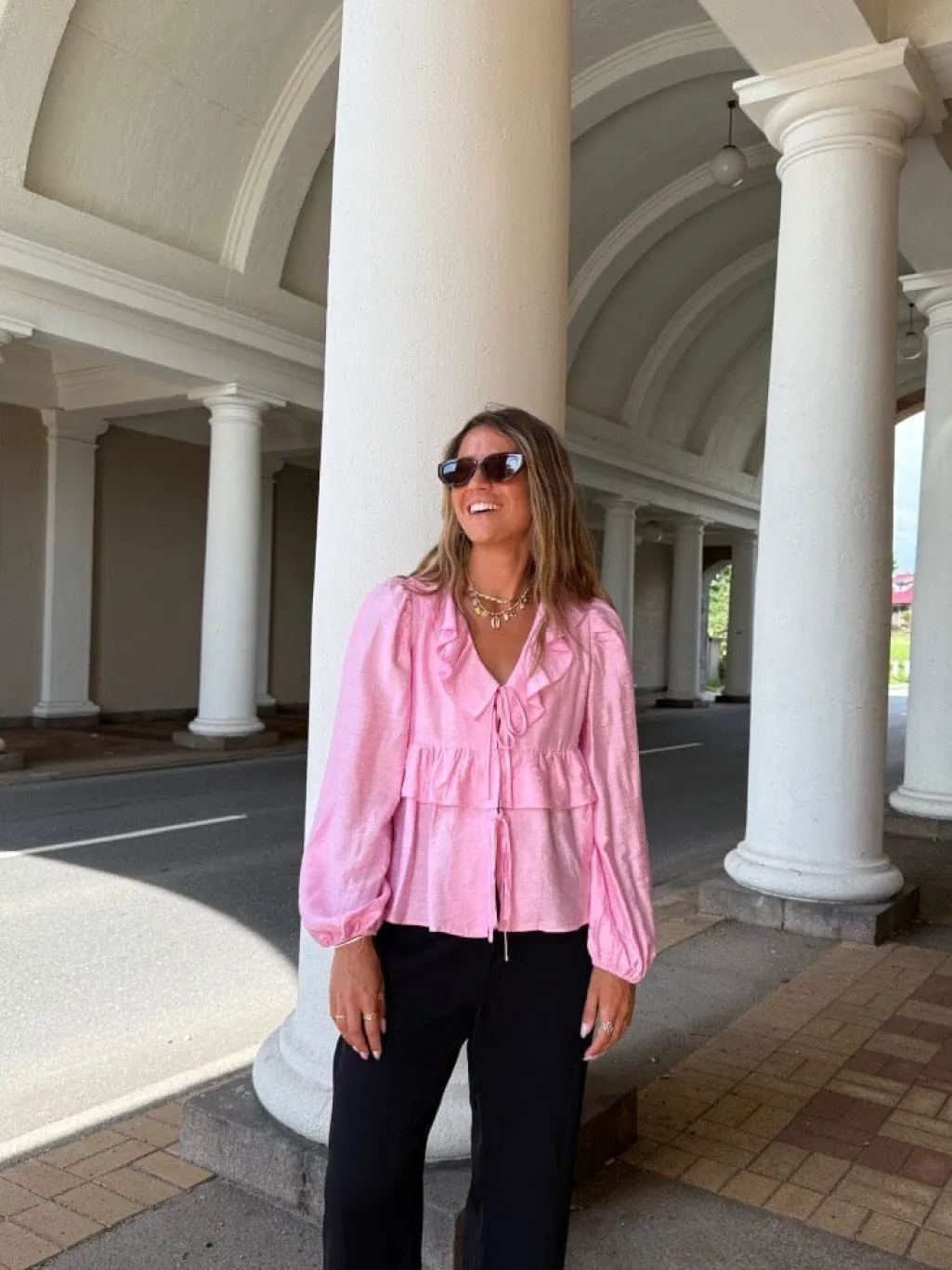 Pink bluse fra Dear Molly i en løs pasform. Blusen passer til både afslappede og festlige lejligheder.