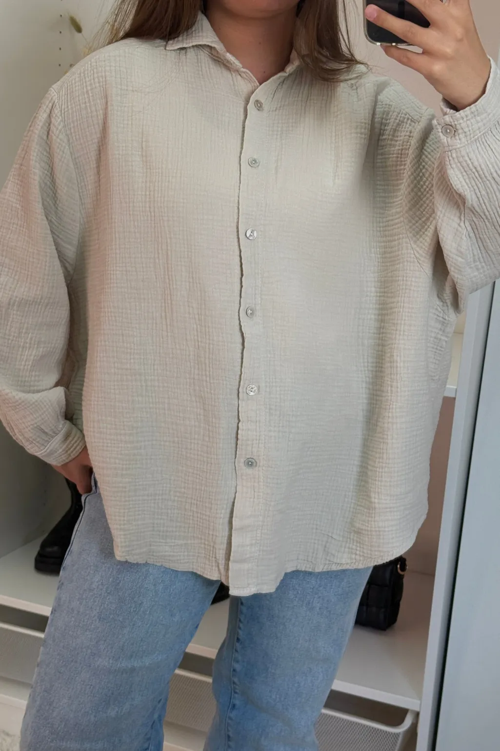 Skjorte fra A-bee i ecru farve med struktureret overflade. Den har skjortekrave, lange ærmer og knaplukning foran. Skjorten er fremstillet i bomuld med en regular fit.