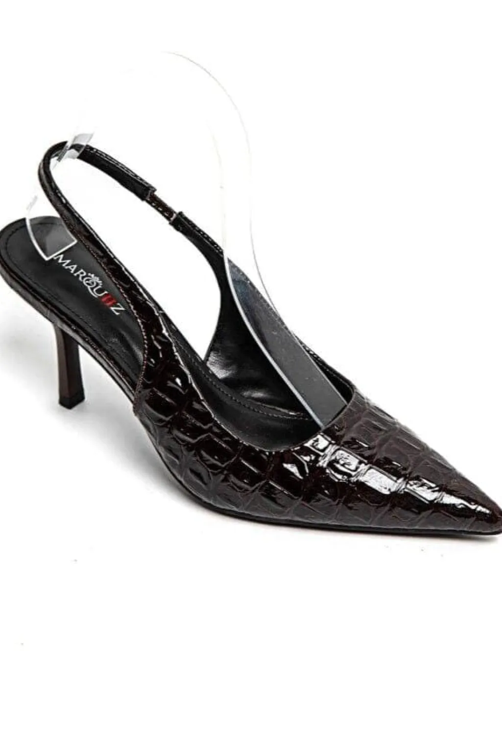 Stiletto fra Bloom i en dyb mørkerød nuance. Skoen har en spids tå og en smal stilettohæl, der passer til bryllupper og formelle begivenheder.