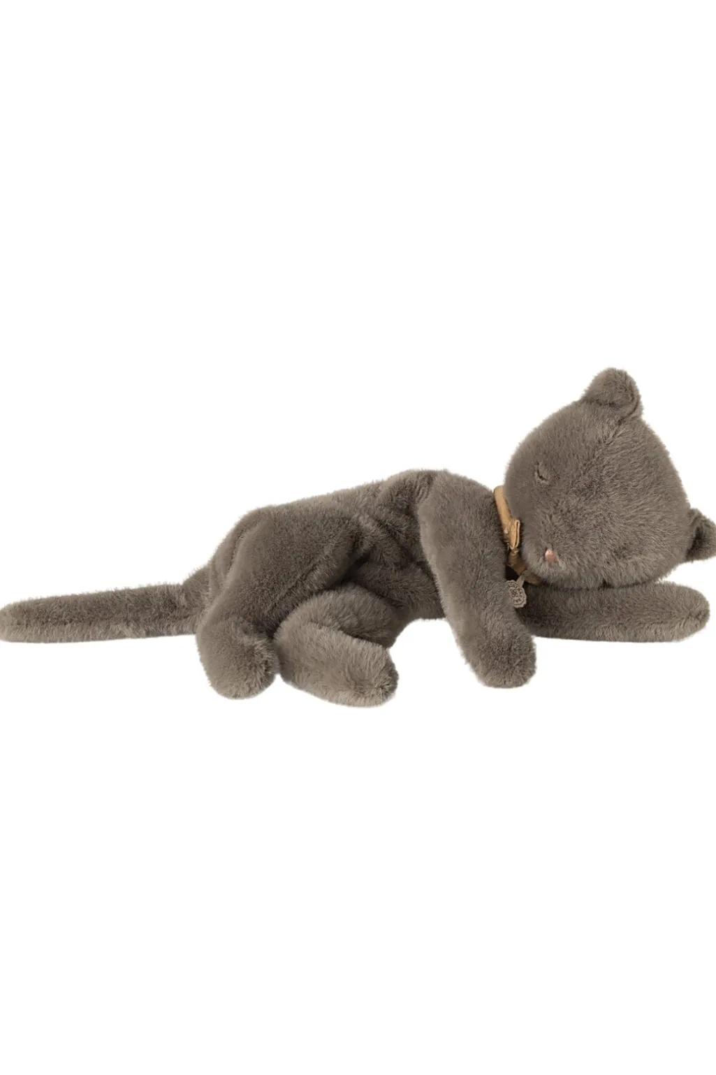 En plyskilling i grå fra Maileg, designet i en liggende position med lukkede øjne og et blødt polyesterplys.