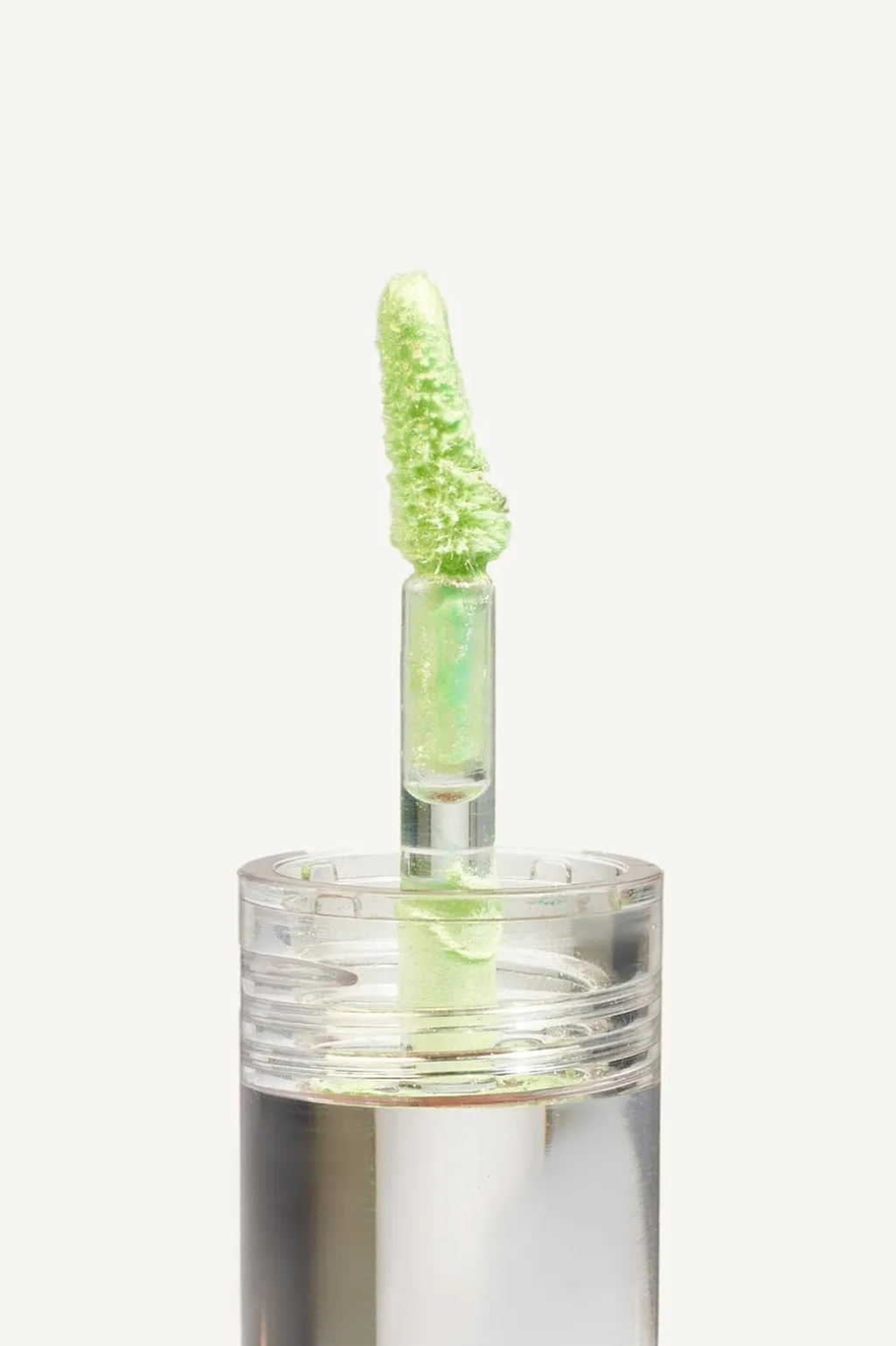 Neglepulver fra Le Mini Macaron i en grøn nuance med glittereffekt. Pulveret giver en skinnende overflade med fine glitterpartikler, der skaber dybde i farven.