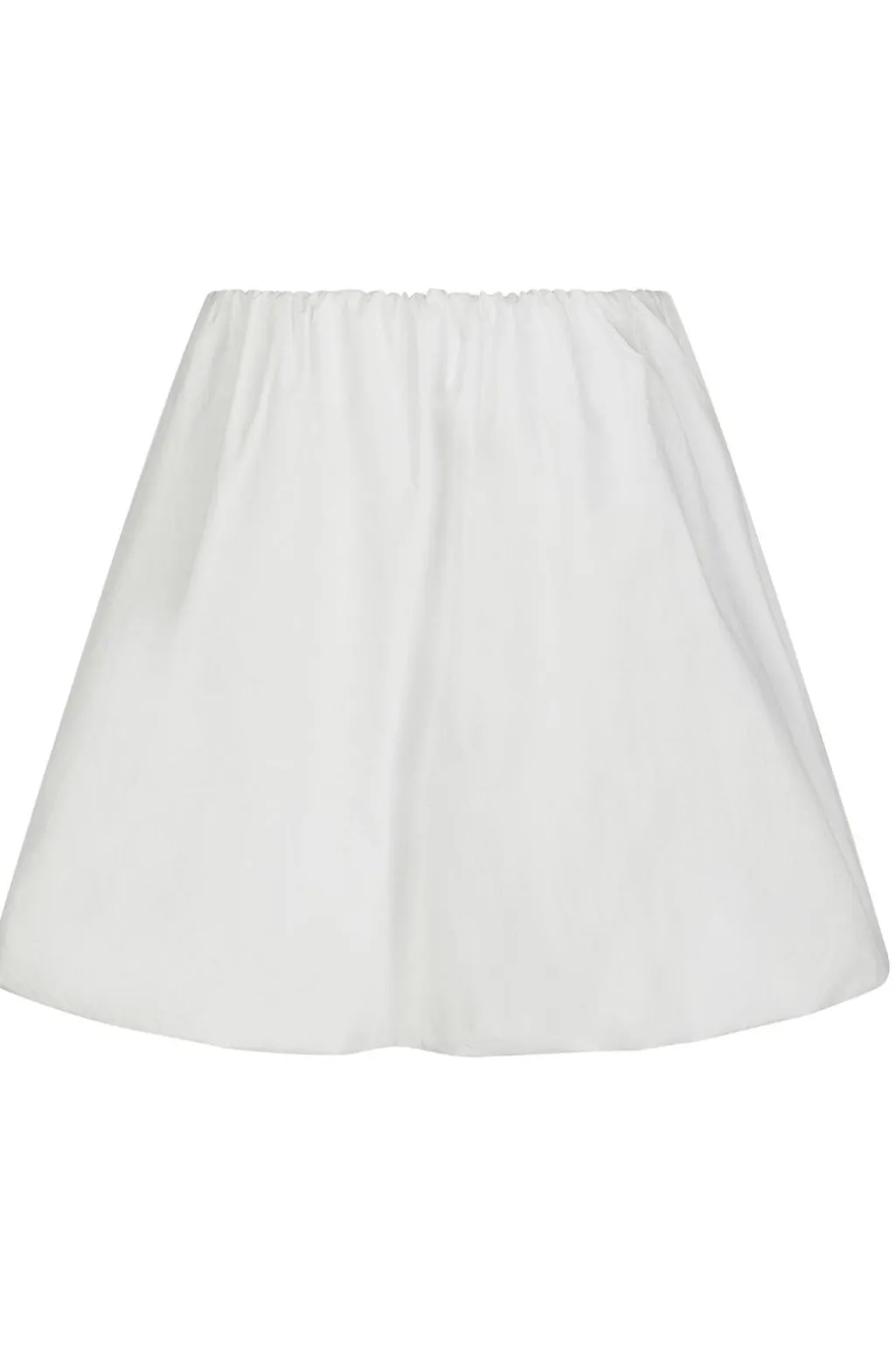 Hvid kort nederdel fra Neo Noir med ballonform og flæsedetaljer. Den fyldige silhuet og den løse pasform giver nederdelen et let og luftigt udtryk.