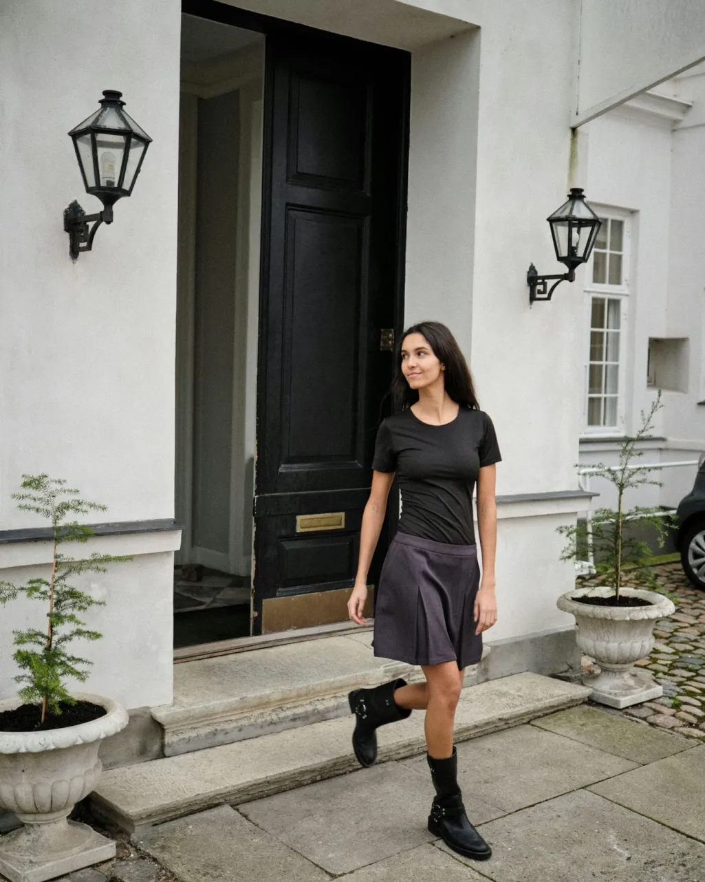 - Modellen er 176 cm høj og bærer størrelse 36
