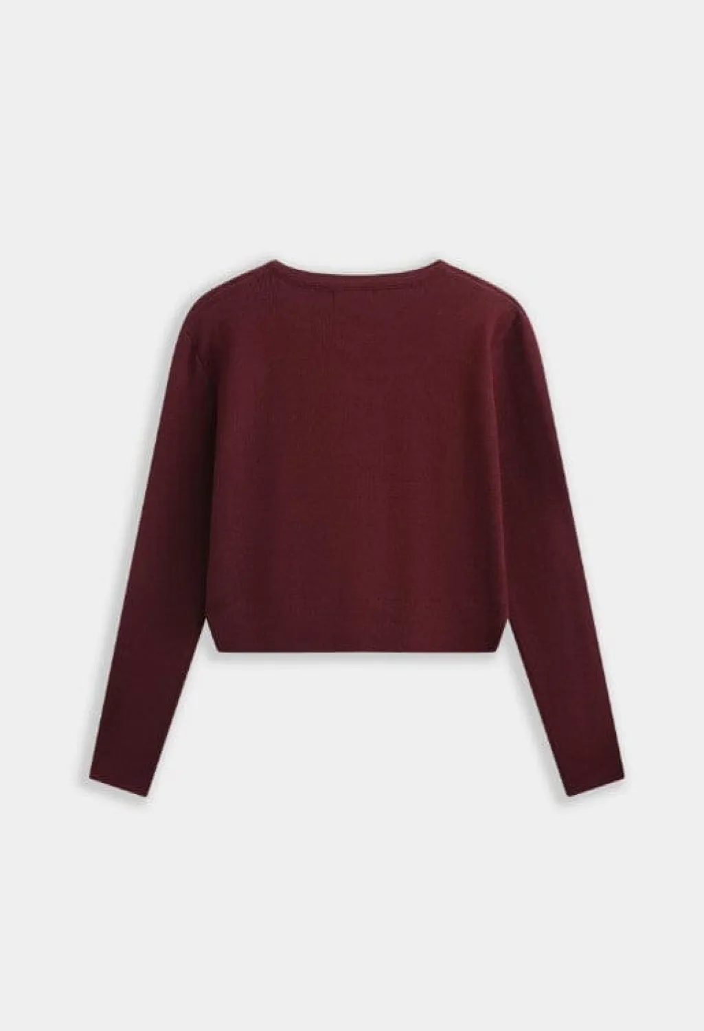 Bordeaux cardigan fra A-bee med slim fit og dekorative guldfarvede knapper i forskellige former. Cardiganen har lange ærmer og en rund halsudskæring.