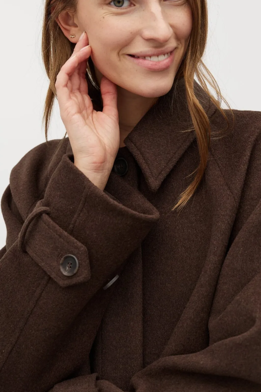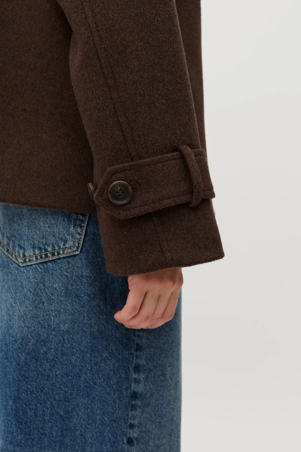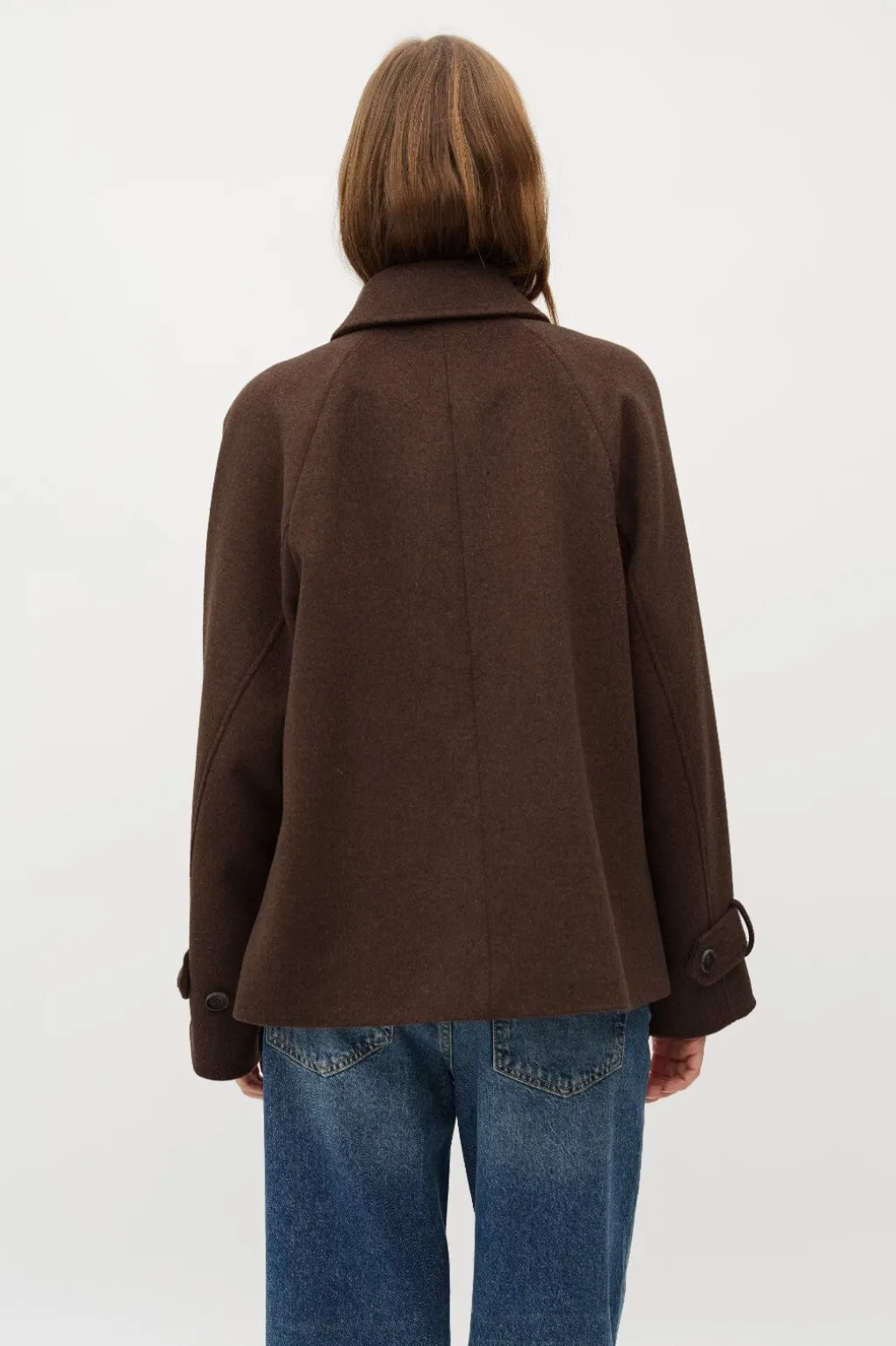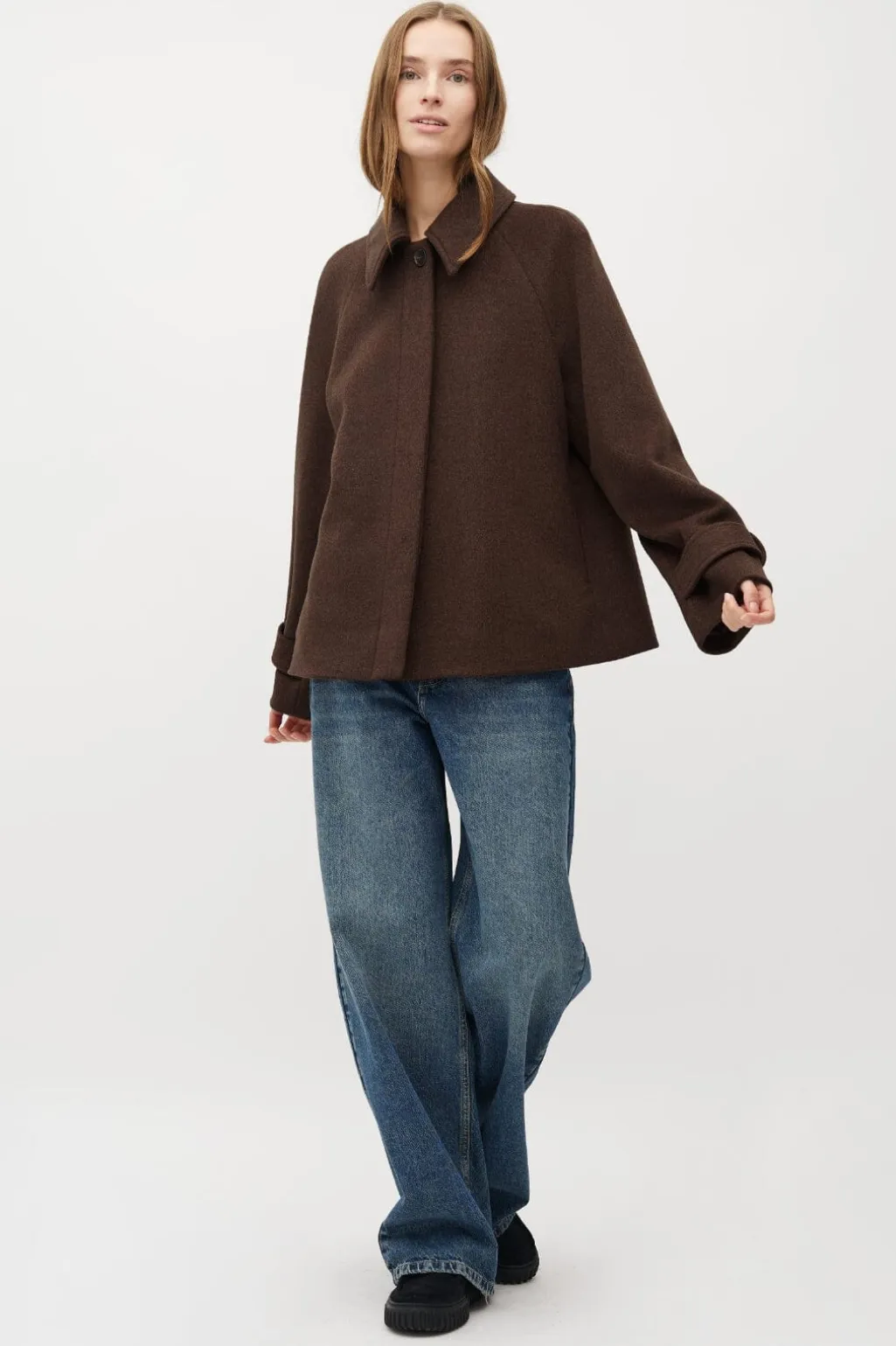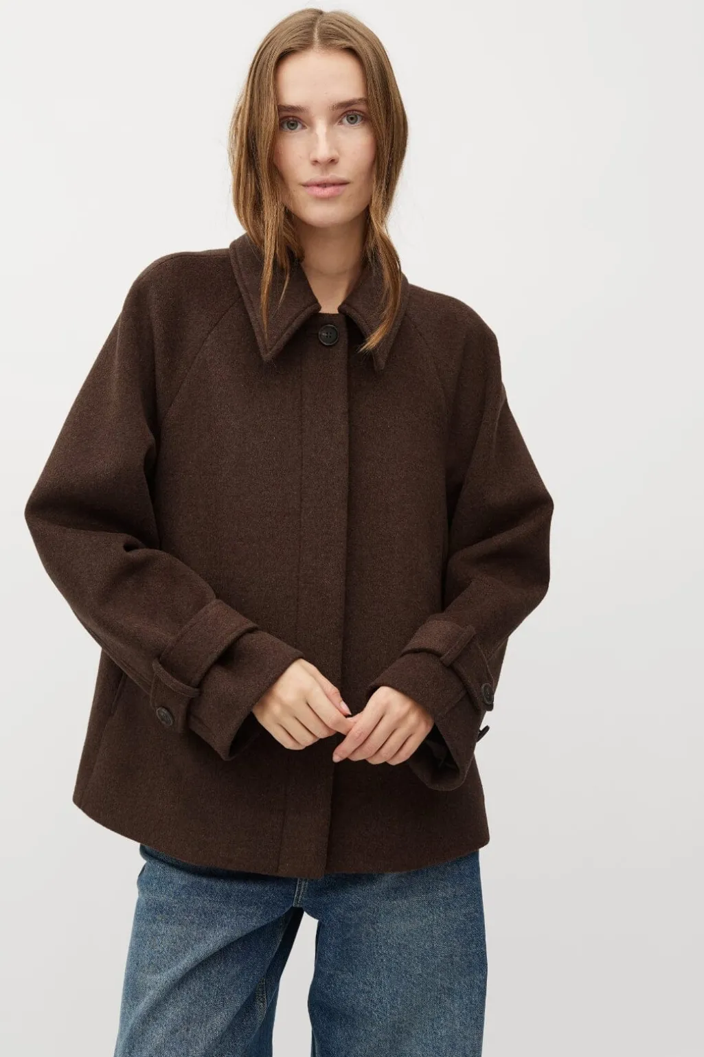 Brun jakke fra MbyM, der passer til både formelle og afslappede lejligheder. Jakken har en klassisk skjortekrave og knappelukning foran.