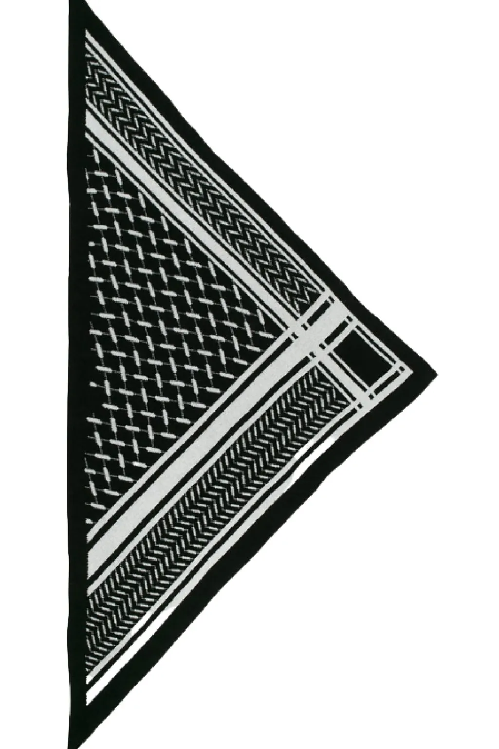 Trekantet tørklæde fra Lala Berlin i sort og hvid. Tørklædet har et geometrisk mønster og er fremstillet af blødt cashmere, der ikke kradser mod huden.