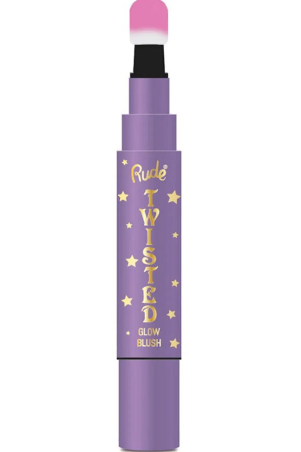 Flydende blush fra Rude Cosmetics med en svampeapplikator. Den lyserøde nuance giver huden en frisk glød og kan opbygges i lag.