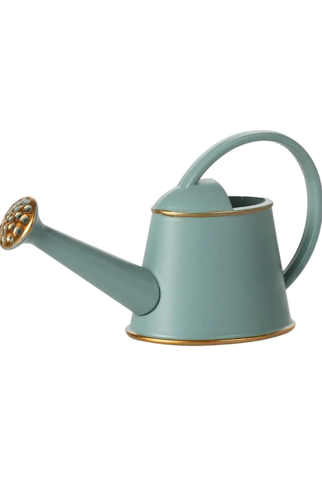 En mintgrøn vandkande fra Maileg med gyldne detaljer. Den klassiske form med lang tud og rund beholder er tilpasset til leg med Maileg-mus.