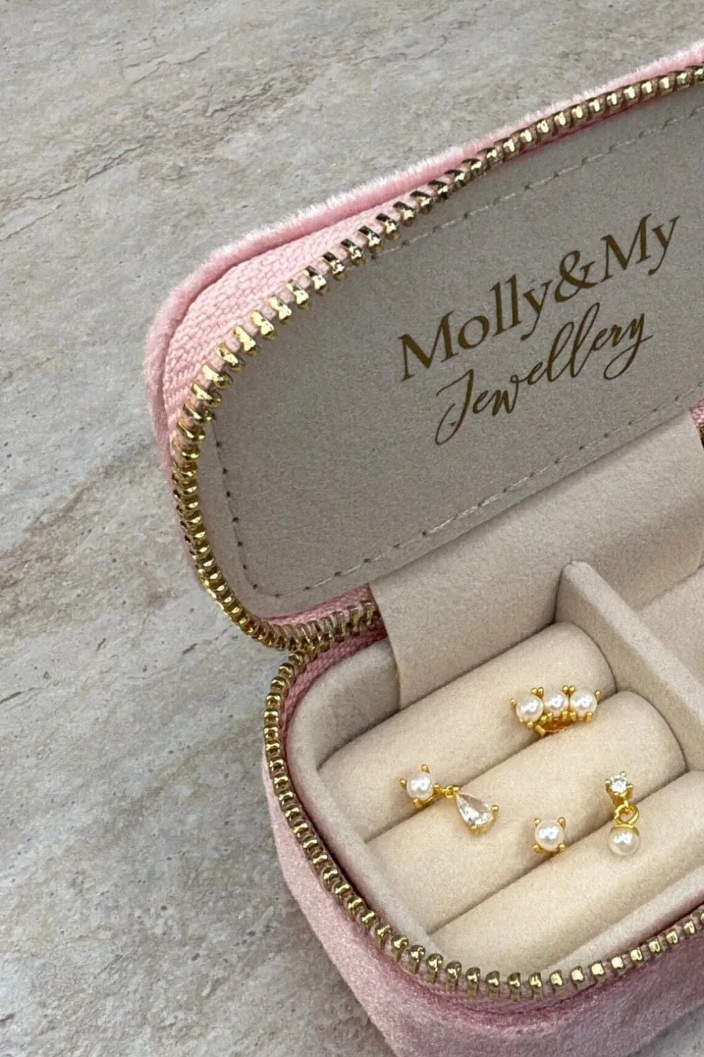 Øreringe fra Molly&My Jewellery, lavet af 925 sterling sølv med en guldfarvet, forgyldt finish. Smykkerne har et simpelt design.