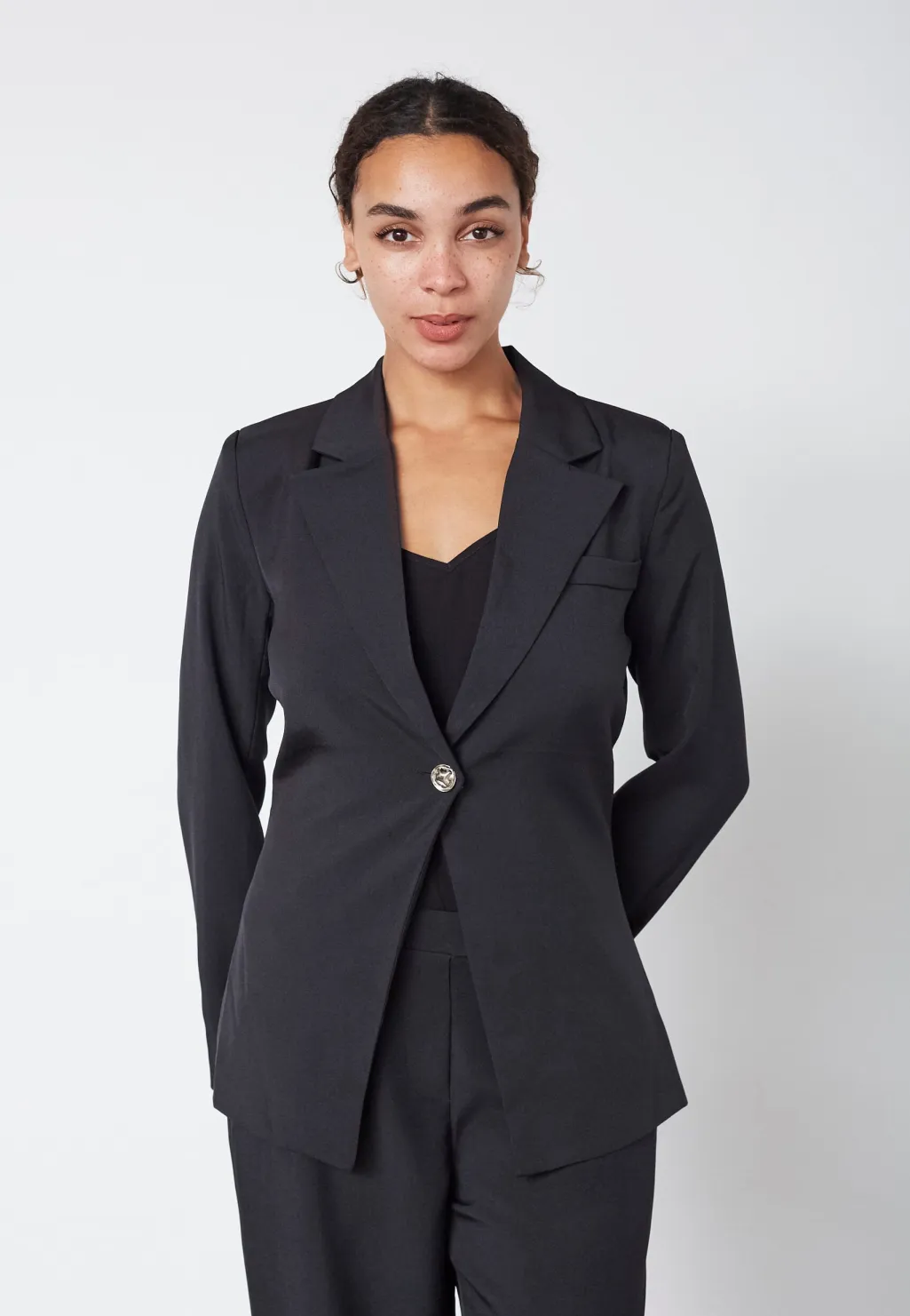 Sort blazer fra Sisters Point med figursyet snit. Blazeren passer til både formelle anledninger og afslappede hverdagssituationer.