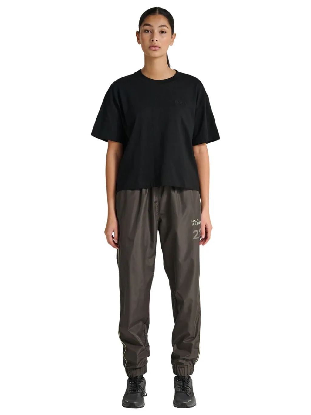 Sort t-shirt fra Halo, lavet af økologisk bomuld. T-shirten har et broderet logo og en løs pasform.