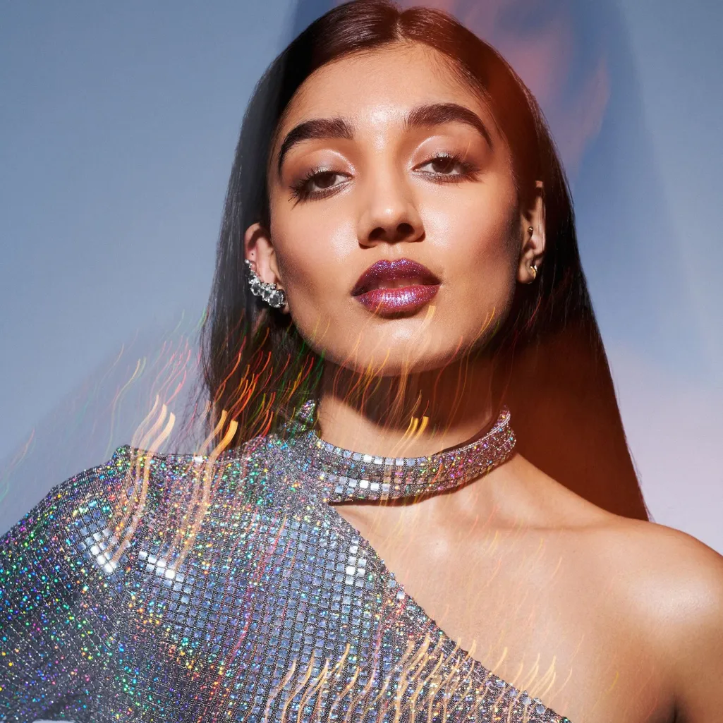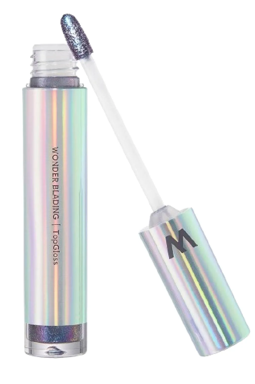 En læbegloss med blå glittereffekt. Den flydende konsistens med non-stick formel giver en jævn fordeling på læberne med en iriserende finish.