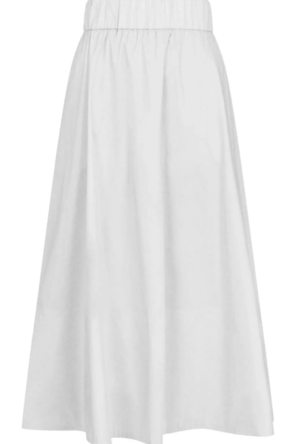 Hvid nederdel fra Neo Noir i bomulds-poplin. Den har en høj talje med elastik og går til midt på læggen. Nederdelen har praktiske lommer i siderne.